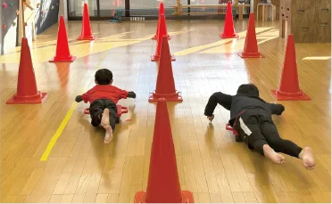 遊びの中にコアトレーニングを取り入れ、発育発達を促し、様々な運動経験を安全に楽しく重ねることで良好な姿勢や効率的な動きの基礎を身につけることを第一として行います。