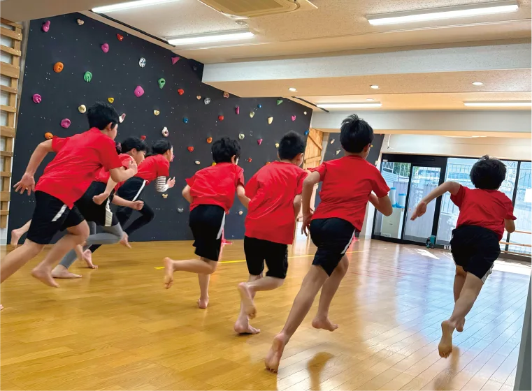 コアトレーニング、アニマルウォーク、ランニング、マット運動、跳び箱、鉄棒、ボルダリング、雲梯、ステップ、ラダーなど