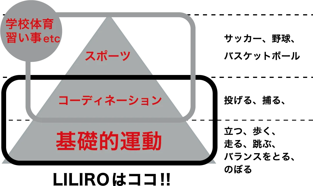運動は脳の発達、情緒の安定、運動機能の向上、健康などたくさんのいい効果をもたらし、生きる力の土台を育みます。