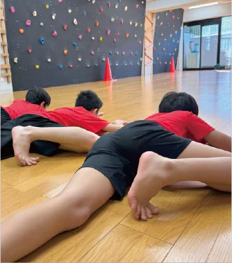 コアトレーニング、アニマルウォーク、ランニング、マット運動、跳び箱、鉄棒、ボルダリング、雲梯、ステップ、ラダーなど